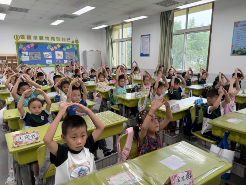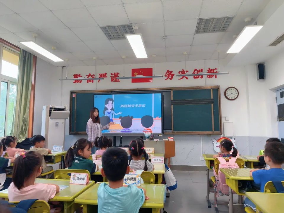 班会通过动画短片、儿歌等方式,把安全知识变成好玩的游戏。接着开展了“校园情景小剧场”,学生通过角色扮演,生动演绎课间追逐、争抢玩具等场景,了解这些行为的危险性,学习“友好相处、有序活动”的规则。最后模拟操场摔倒场景,教会孩子“不推不挤慢慢玩”。“原来在走廊奔跑会撞到同学!”一年级(20)班的同学们在体验后认真说道。