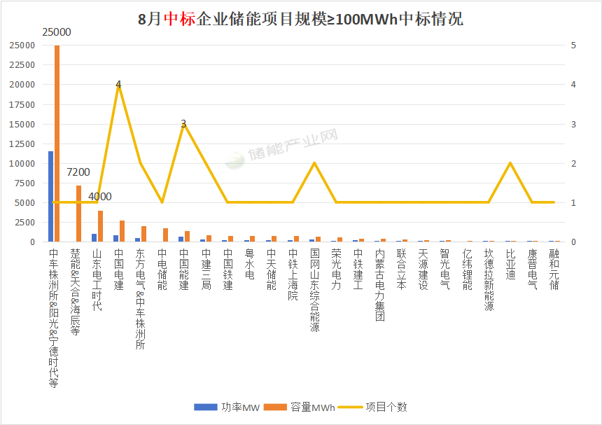 从规模上来看,中车株洲所/阳光电源/宁德时代等31家中标25GWh储能系统采购。